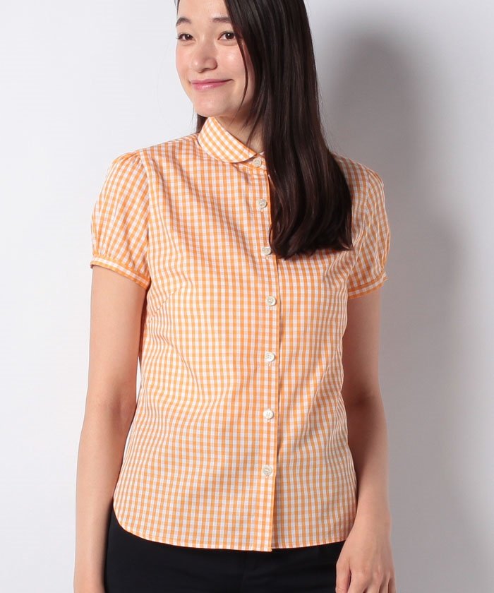 ラウンドカラー&パフスリーブでスイートなルックスに仕上げたギンガムチェックシャツ。細身のすっきりとしたシルエットが品よく着こなせるアイテム。チノパンなどカジュアルなボトムにインしても。