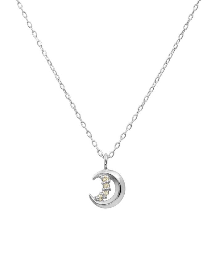 フェミニンな10金ゴールド!K10ゴールド 天然ダイヤモンド ネックレス 選べる3カラー 【ムーン/K10WG】