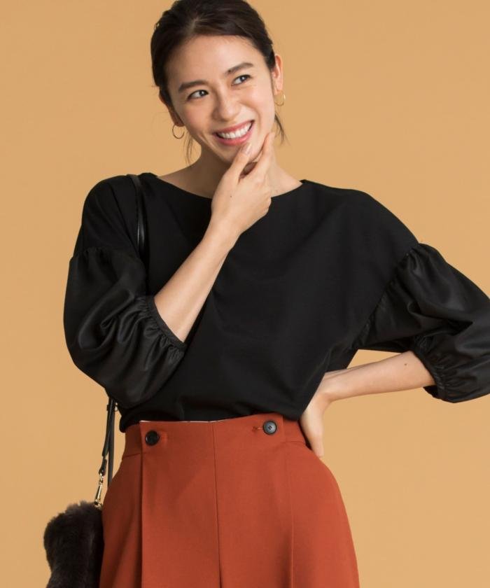 ■商品説明シャツ素材のギャザースリーブがポイントのプルオーバーです。長いシーズン着用できる袖丈とボリューム感がポイントです。■素材説明超細番手のコンパクトコットンと高収縮ポリエステルを交編し、高いストレッチ性とキックバックを実現。適度なハリ感ときれいな表情があり、上品さとコンフォート感を兼ね備えた素材です。