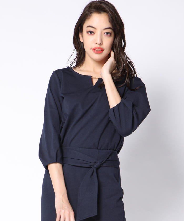 シルキータッチのきれいめポンチ素材を使用したエレガントなカットトップス。胸元はシャープなVカットを入れ、メタルパーツをつけてぐっとハイセンスな印象に仕上げました。程よい肉感とハリ感があるのでシルエットを美しく保ってくれます。ベーシックなセットインのシルエットですが、袖口をバルーン風にすることでいつもとは少し違ったニュアンスをON。ふんわりとしたお袖が女性らしさを演出します。同素材でお作りしたウエストリボンスカート(2651-71091)とセットで着ていただくと通勤や学校行事服として使えるきちんとスタイルに◎!もちろん単品でドロストパンツ(2650-71056)と合わせてカジュアルに着こなしてもGOODです!カラーは大人なピンクとベーシックなネイビーの2色展開です。