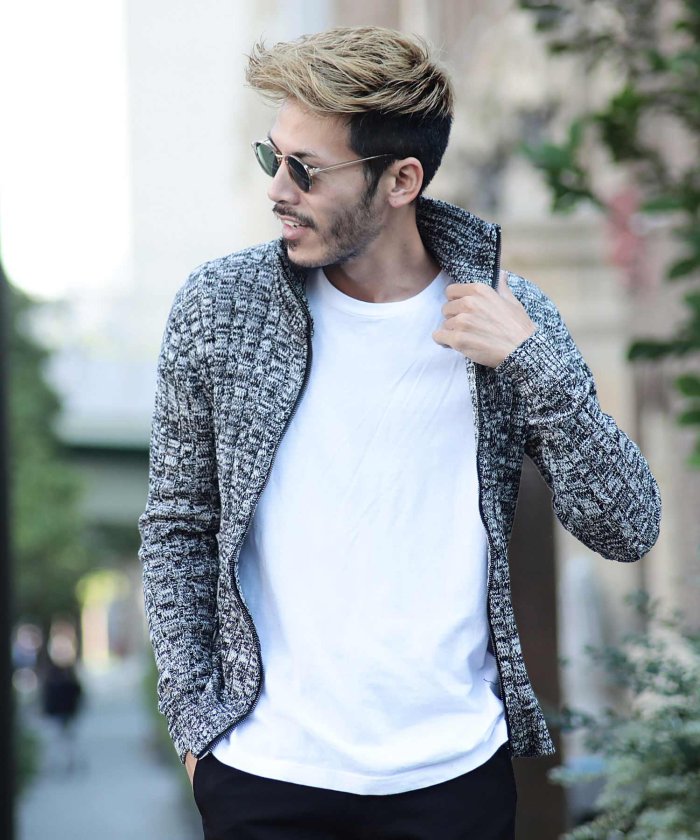 ハイネックZIPUPニット / ニット セーター メンズ ハイネック ZIP トップス カーディガン
