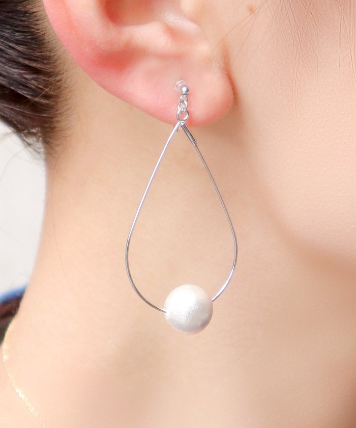 ティアドロップコットンパールピアス/樹脂ピアス/樹脂ノンホールピアス