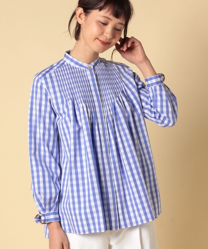 フロントにあしらった繊細なプリーツデザインや、カフスのリングなどモードなディテールをあしらったブラウス。愛らしいギンガムチェックのパターンも魅力的です。シンプルなボトム合わせでもスタイルがキマる1枚です。