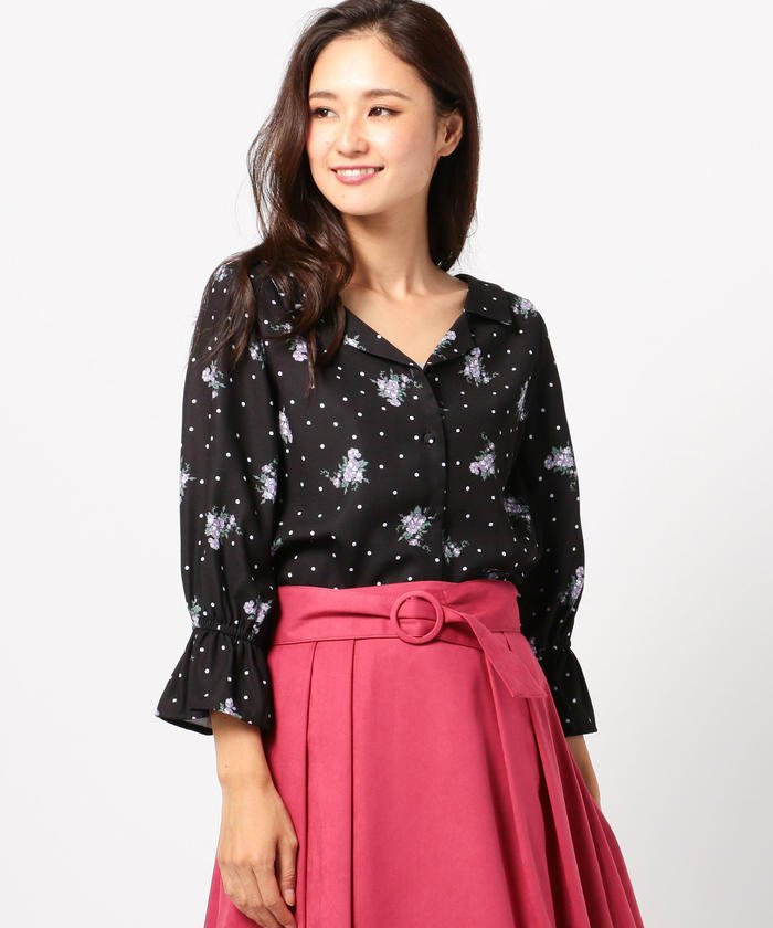 ドット花柄ブラウス