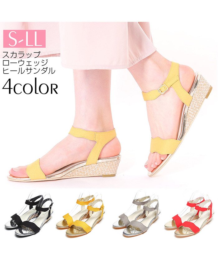 フェミニンなスカラップカットに、中底のマイラー素材がピリッとアクセントで効いたデザイン。 ジュート柄のヒール巻きはナチュラルな印象を与えてくれます。 ローウェッジで安定感があり、屈曲性のあるインソールと疲れにくい低反発クッションインソールで歩きやすさ◎。